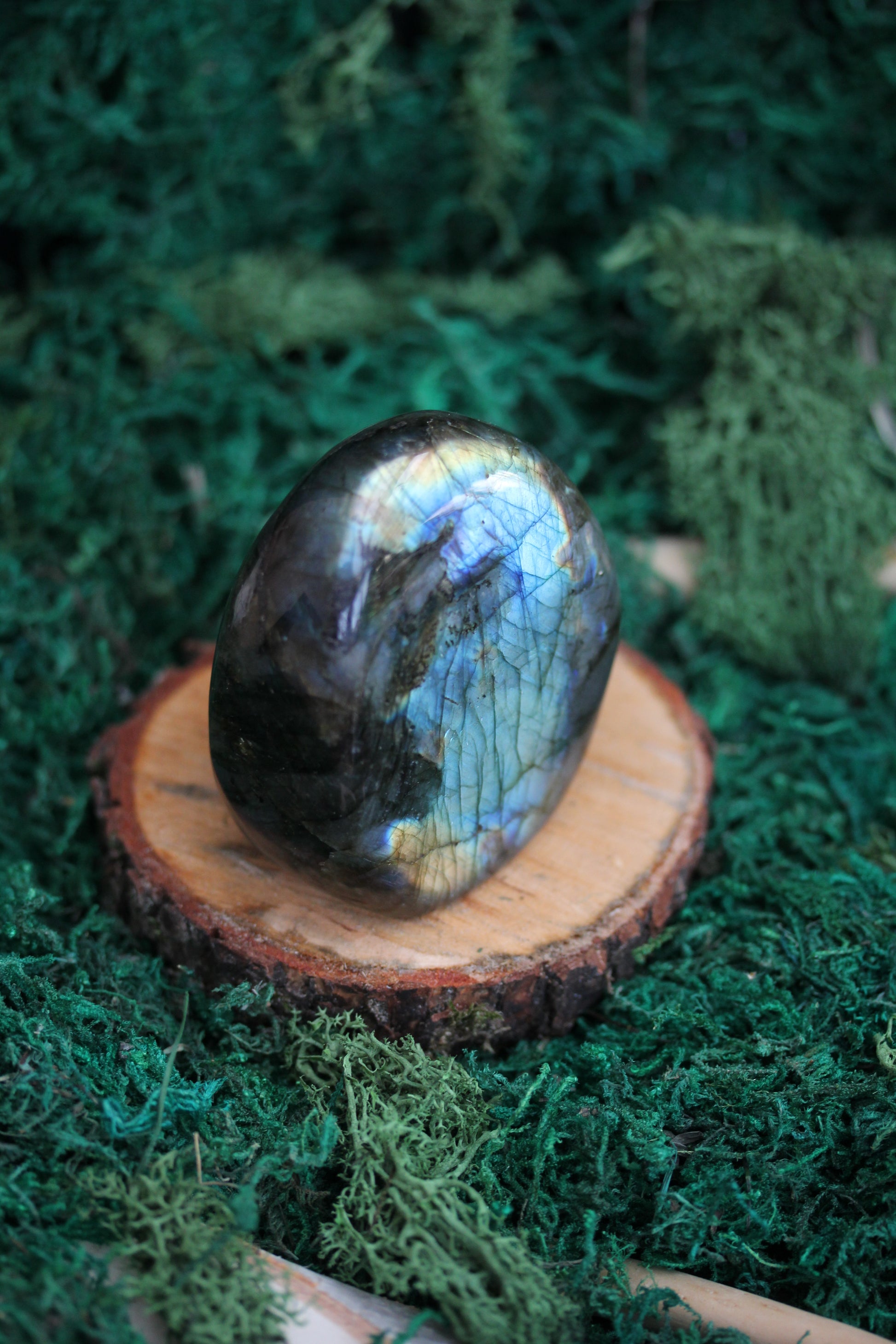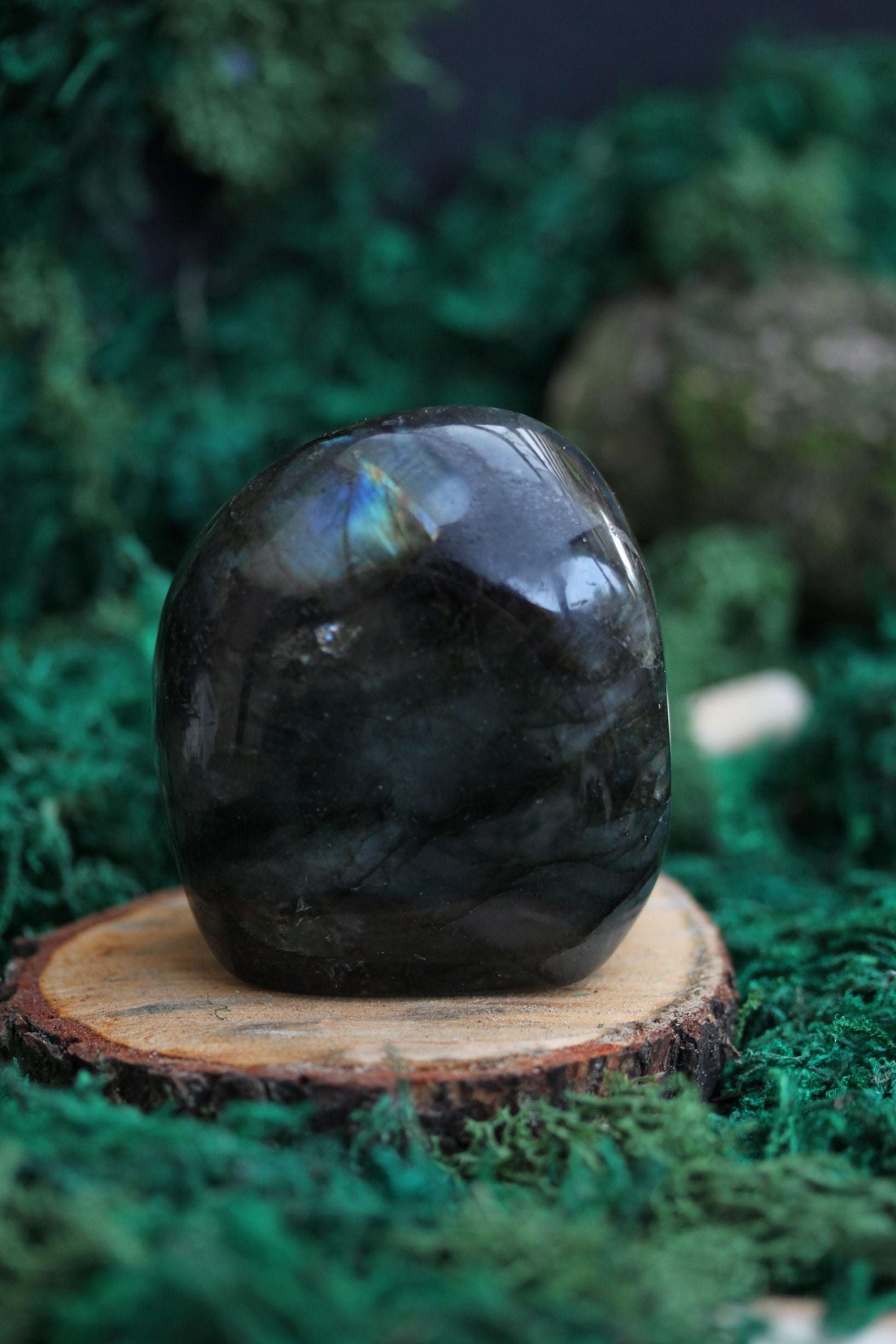 In the heart of a moonlit forest, nestled amidst ancient, whispering trees, there lies a hidden treasure, a Blue Labradorite Freeform Crystal that seems to hold the secrets of the cosmos. Its beguiling shades of blue are reminiscent of the serene lakes where legends of old speak of ethereal beings who danced upon the water's surface.