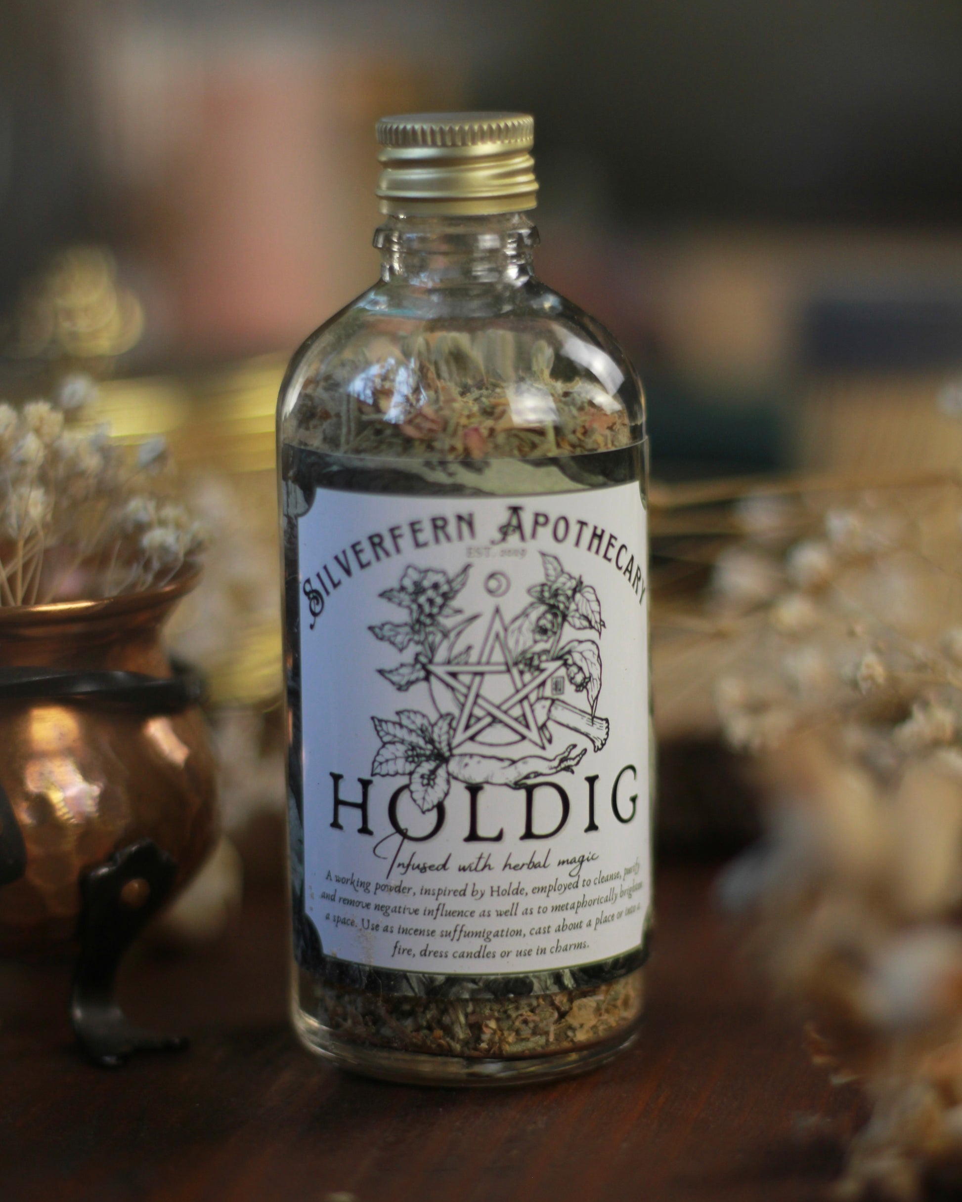 This blend of native European herbs is a nod to the brightness that Holda brings, brightening the darkness that she herself is most familiar with, that we all carry within us too. It is one side of a coin. It is a purifying blend, to cleanse and remove negative influences as well as to metaphorically brighten.