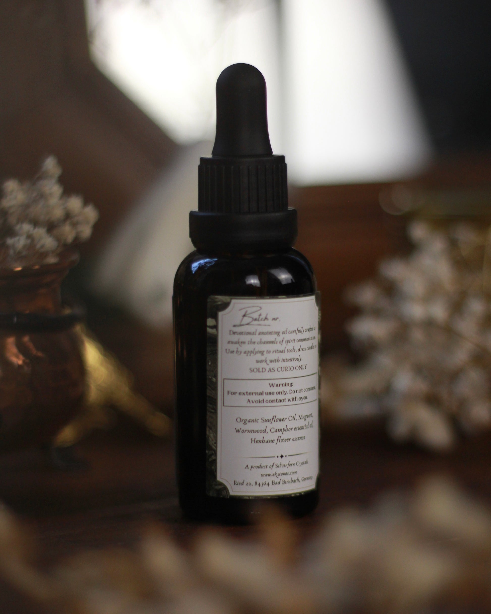 Mugwort and Wormwood, herbs revered for their spiritual significance, have been carefully infused for seven weeks, harnessing their sacred energies and blended together during the sacred threshold of All Hallows Eve, the liminal time when the veil between our world and the spirit realm is at its thinnest.