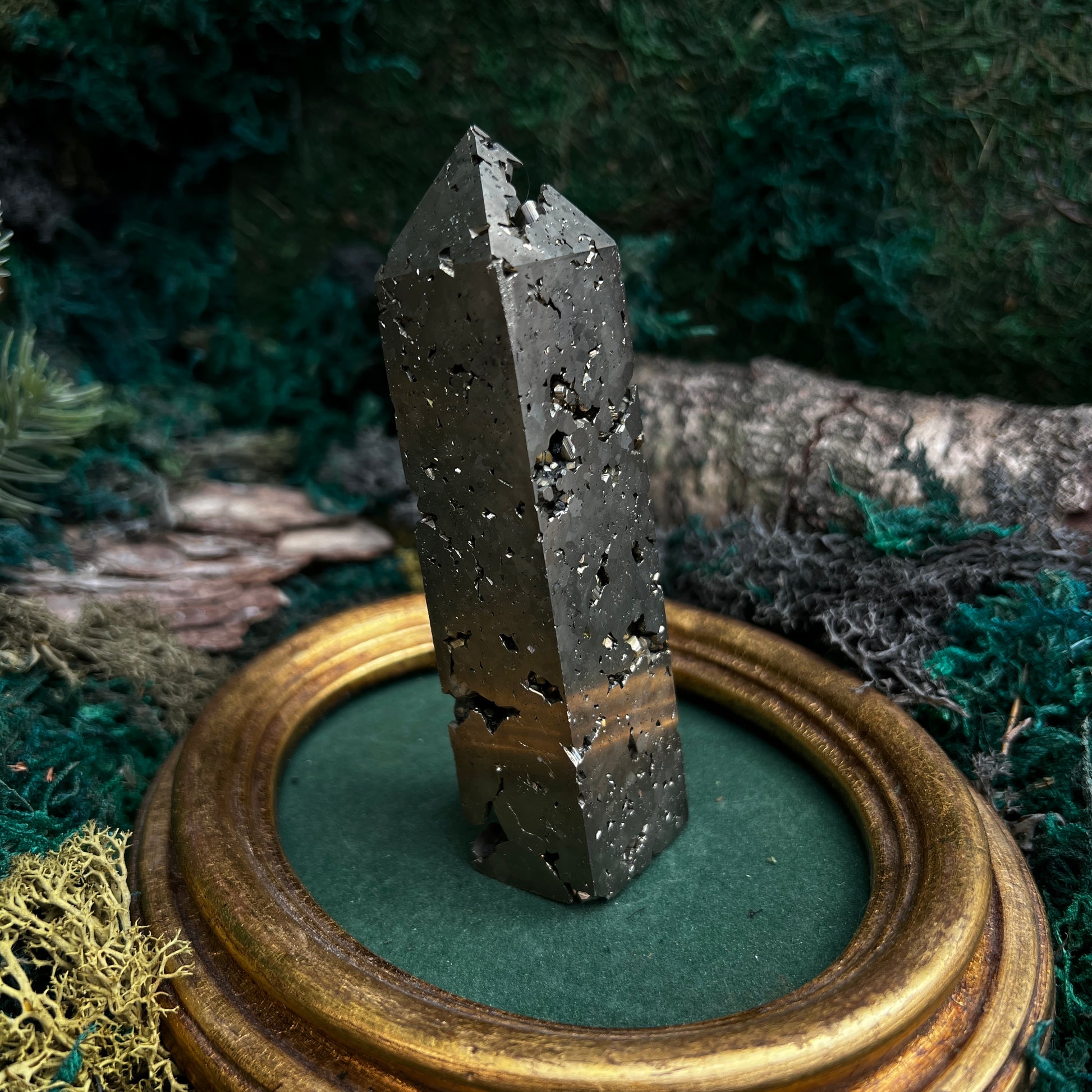 Golden Pyrite is known as a powerful protective stone that shields against negative energies and promotes a sense of confidence and self-worth. Its unique texture and coloration make each tower crystal one-of-a-kind, with intricate patterns that reflect the natural formations of the earth.