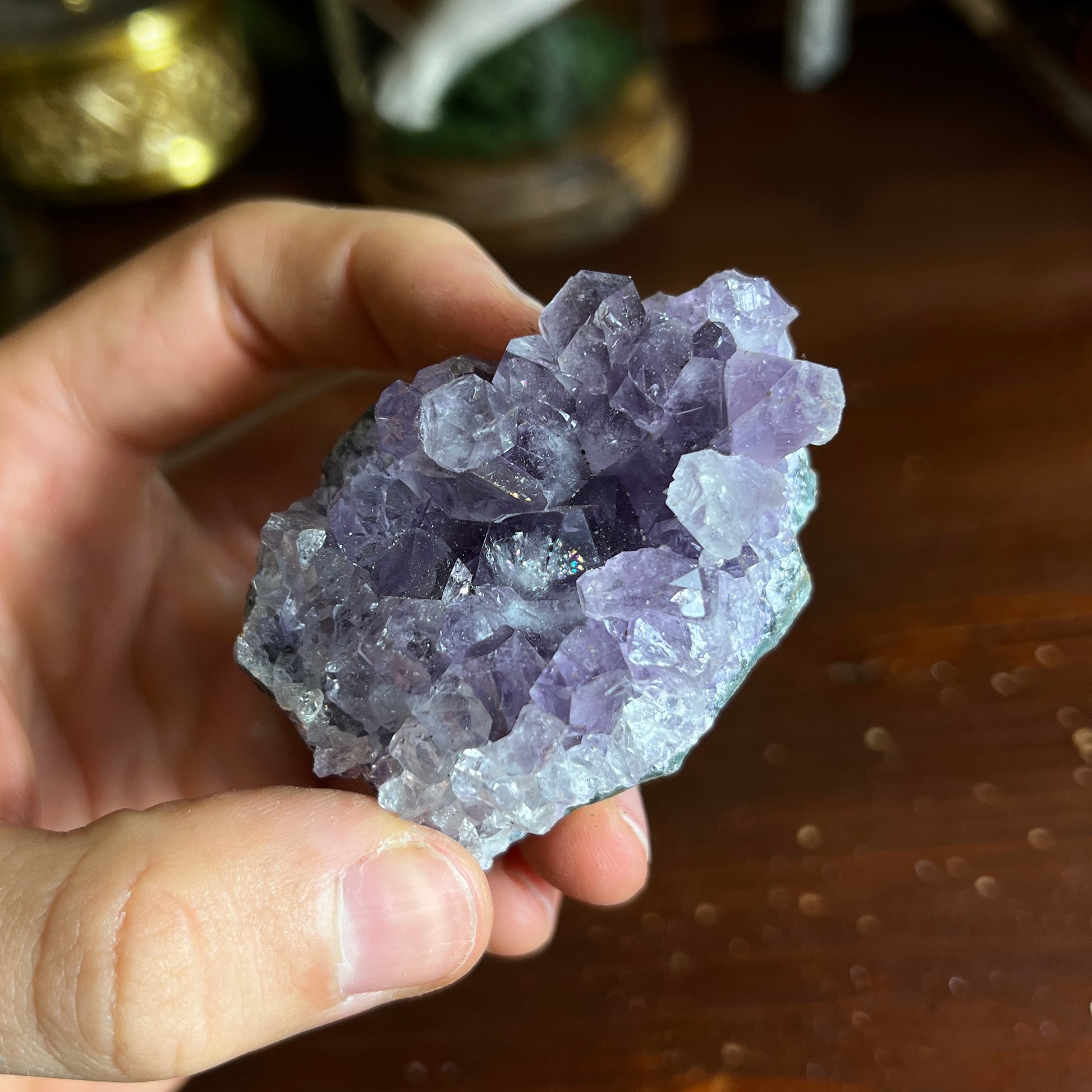 Our crystals come in a variety of sizes, from small pieces to larger specimens, making them a versatile addition to any collection. Use them to decorate your space, carry them with you as a talisman, or incorporate them into your spiritual practices. The possibilities are endless with these stunning Raw Purple Amethyst Crystals.